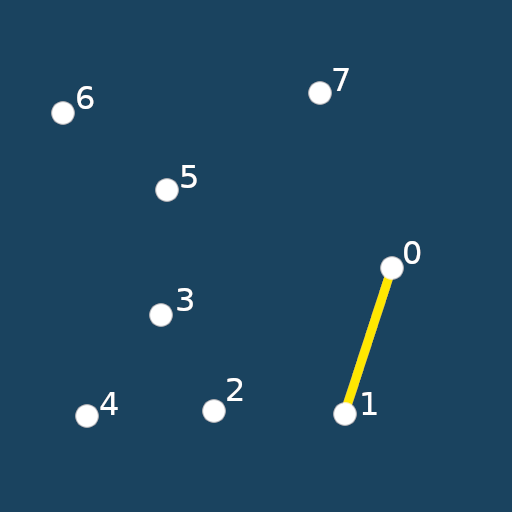 The first obvious thing that came in to my mind is to create triangles along the edge. This means we already have two point. But there are three points needed to create a triangle. The third one has to be on the right side of the segment created by the first two points. And the created triangle should not intersect any previously created triangles.